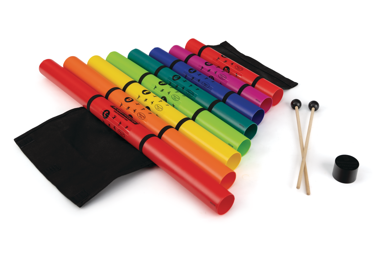 You can play the pipes as a xylophone by mounting them in the included tube holder and striking them with the two included mallets. The tube holder also provides convenient storage in between experiments.